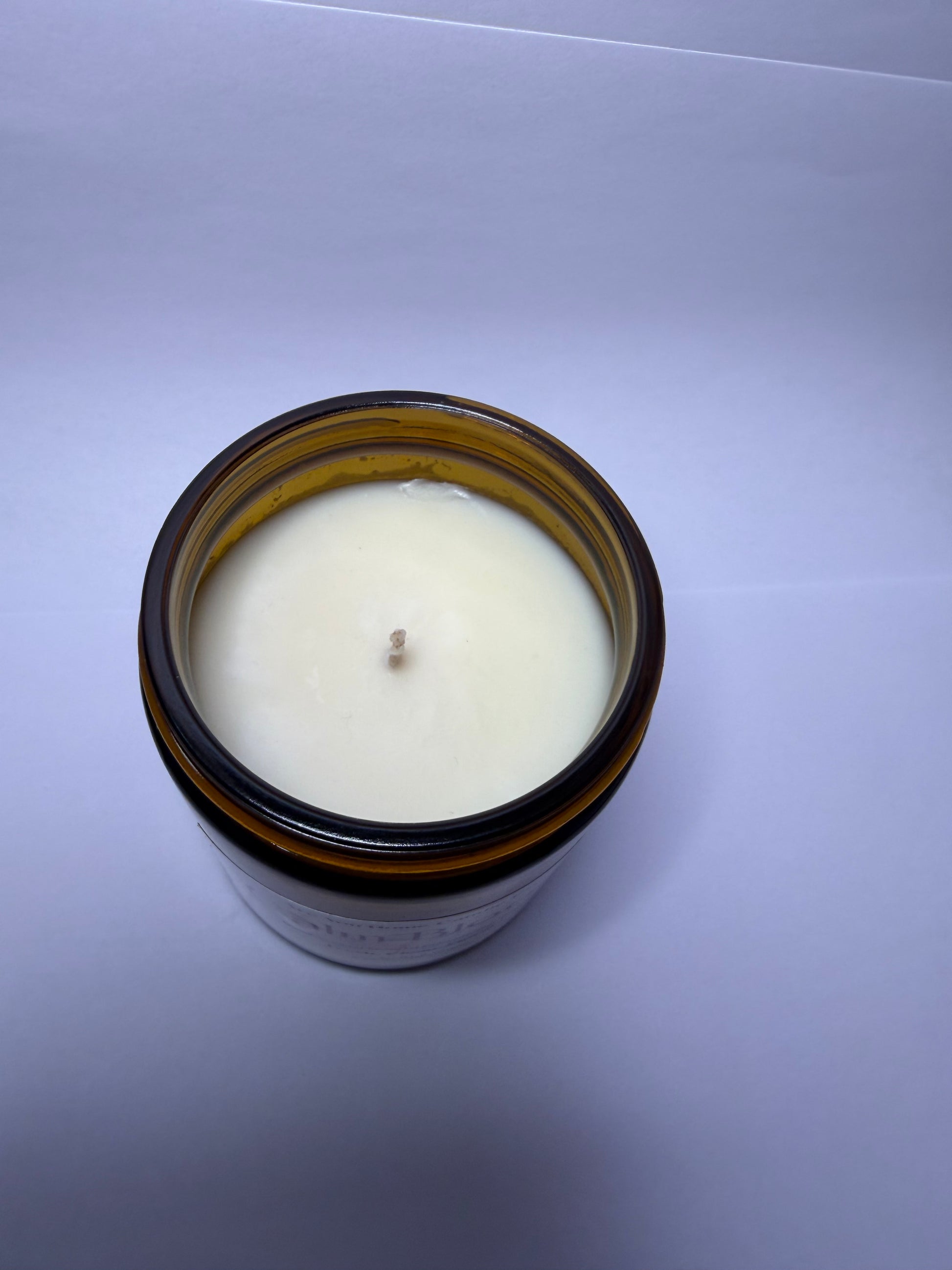 *2 out of 4 photos are mock-up photos for label clarification. The candle jar is amber not clear glass*